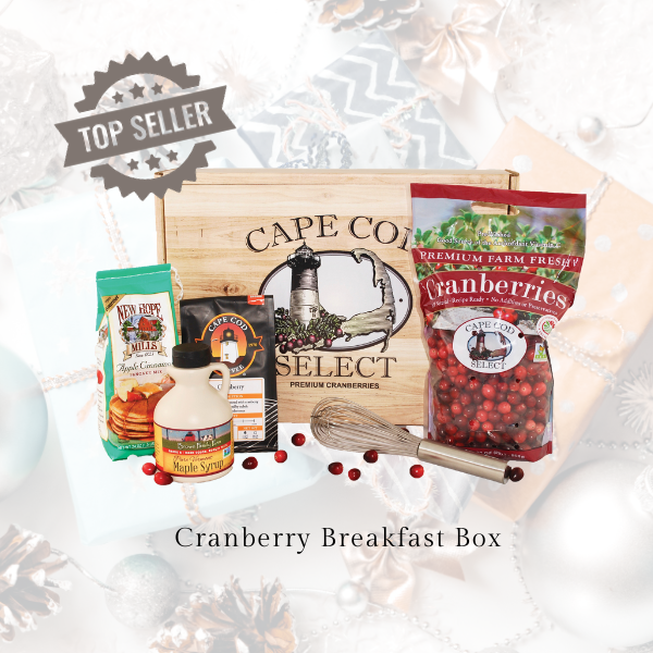 One of our top selling gift boxes, The Cranberry Breakfast Box makes such a great gift especially for families. What better way to create holiday memories than in the kitchen making delicious cinnamon apple cranberry pancakes (recipe card included) while chocolate cranberry coffee is brewing? In addition to 2 lbs of fresh cranberries, apple cinnamon pancake mix, Cape Cod chocolate cranberry coffee, the box also includes organic maple syrup, and a whisk. Every year since 2018 this box has been a top gift choice.