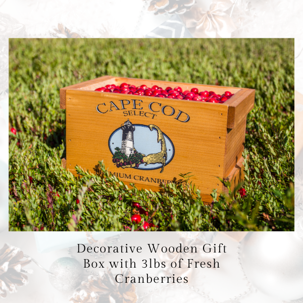 A tried and true of Cape Cod Select’s, the ever so popular wooden crate filled with 3 lbs of premium fresh cranberries and recipe card for one of our delicious cranberry recipes! Our Decoratie Wooden Keepsake Box is the “OG” gift box. Designed to emulate the old cranberry crates of the past with a stylish look and functionality of today. Once you’ve used the fresh cranberries up you have a beautiful wooden box to display in your home. Keep recipe cards in it, store small trinkets, or whatever else you want to hide away! This crate makes for a nice gift or a treat for yourself.