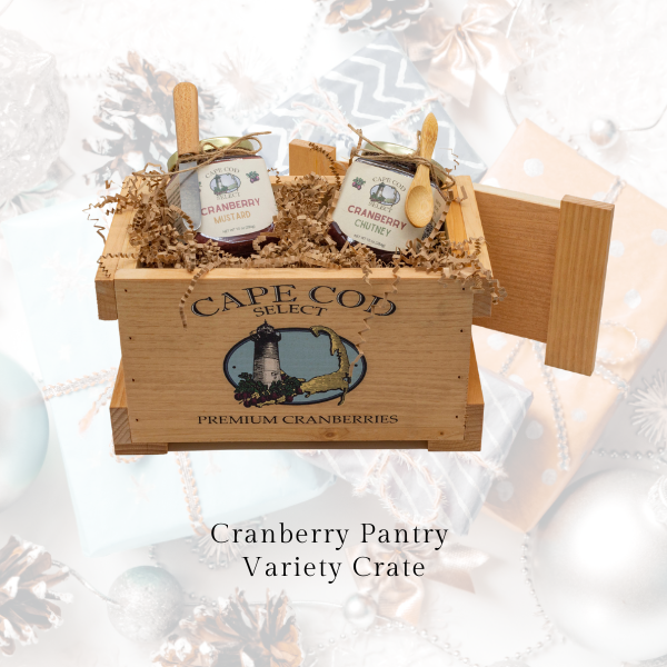 Want to upgrade the mix pack? Choose The Cranberry Pantry Variety Pack. Our specialty wooden cranberry crate is filled with kraft crinkle paper and includes a 10 oz jar of cranberry chutney with a mini wooden spoon and a 10 oz jar of cranberry mustard with a mini wooden spreader along with recipe cards. The crate makes a great keepsake for the home and the sauces a delicious addition to any charcuterie board or sandwich.